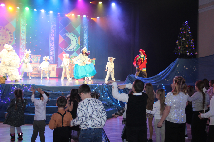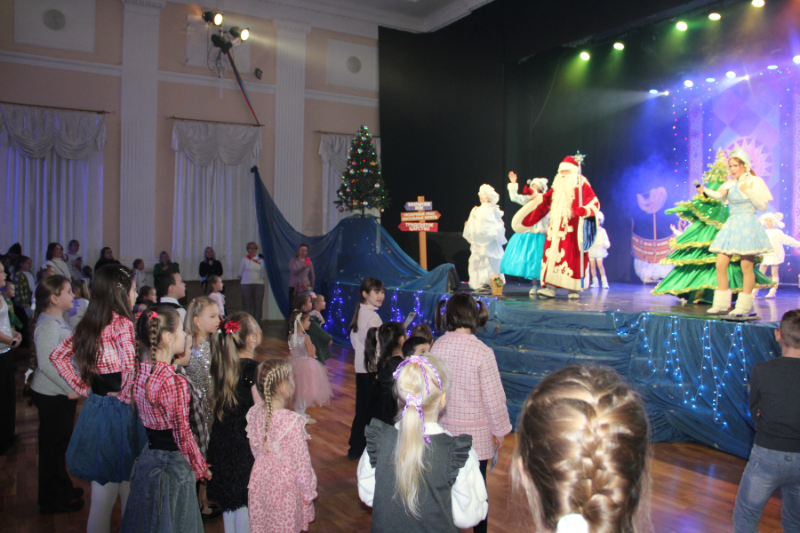 Ребята посмотрели новогоднее представление, подготовленное юными артистами Дворца творчества, вместе с Дедом Морозом и Снегурочкой поучаствовали в дискотеке.